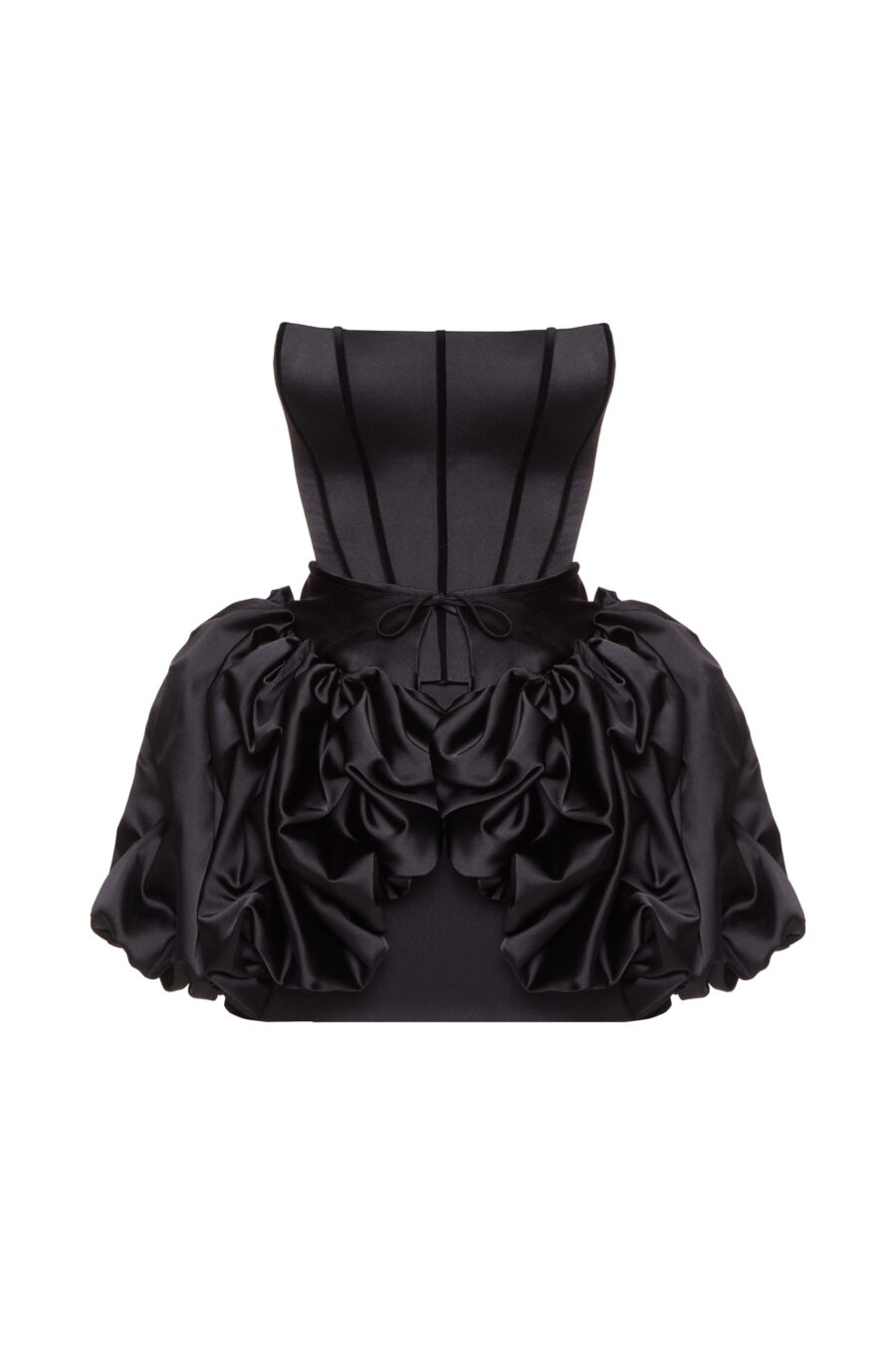 Dreamy accessory – a cloud-like basque made of sheer fabric. The basque can be worn over hips as an overskirt or over shoulders – as a cape. Available in 3 colors: black, ivory and pink.