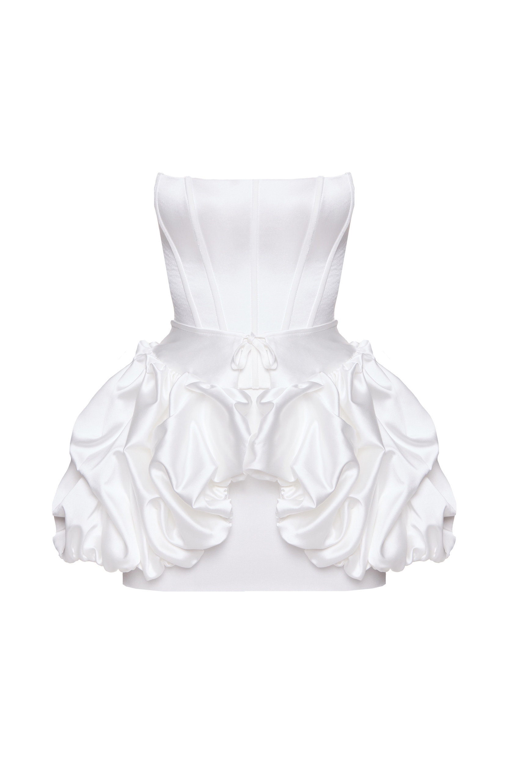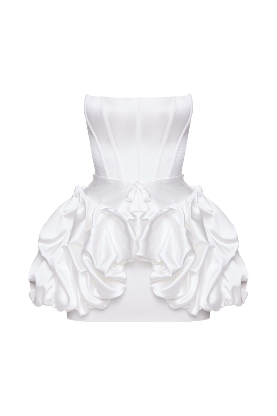 Dreamy accessory – a cloud-like basque made of sheer fabric. The basque can be worn over hips as an overskirt or over shoulders – as a cape. Available in 3 colors: black, ivory and pink.