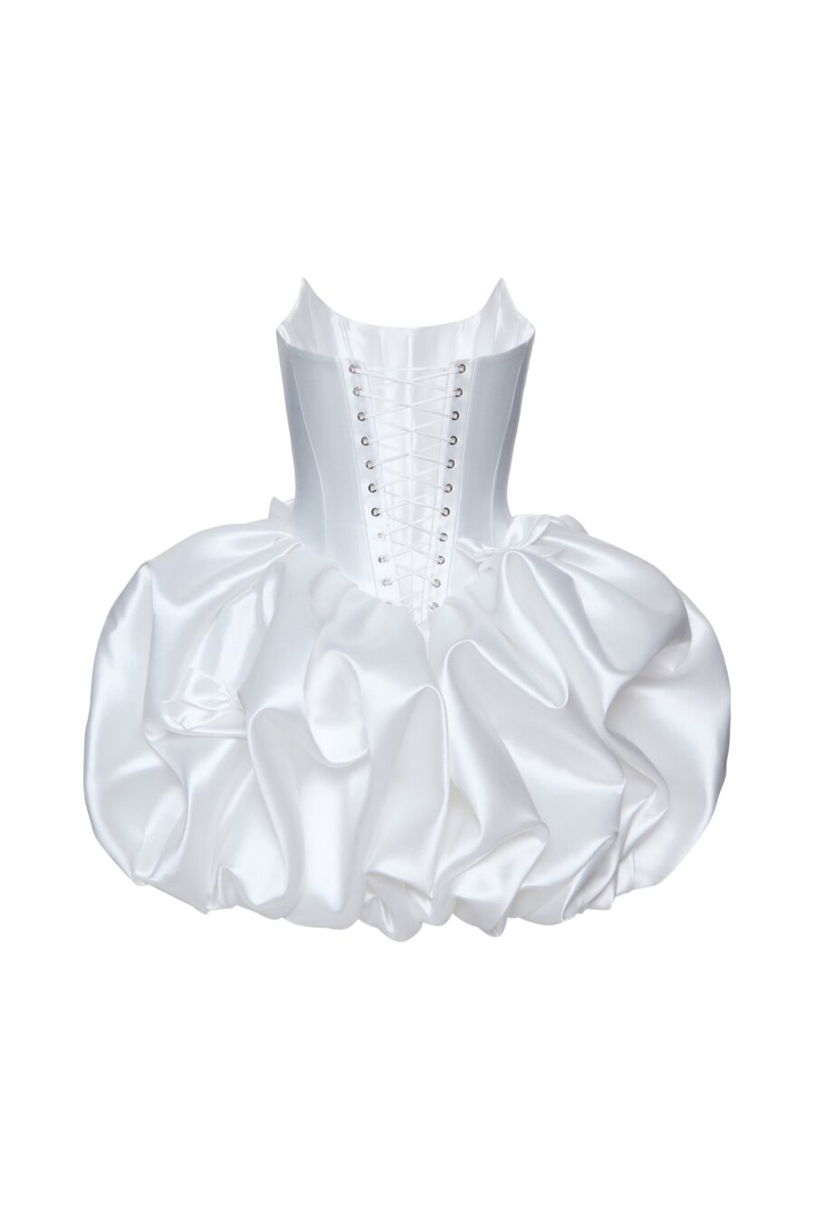 Crème de la Crème dress – to be the highlight of the day. Firm simple lace-up bodice, modest neckline and sophisticated flounce skirt create the harmony of the outfit. Available in 3 colors: black, ivory and pink.